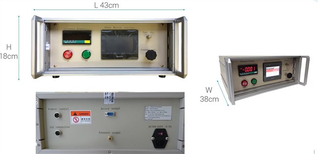 主要功能 : 1.設定產品測試所需之壓力與流量。 2.當流量經過透氣膜時所產生的壓阻達到 模擬的水深壓力時,即可紀錄相關數值。 3.可經由專用軟體紀錄至電腦與上傳系統